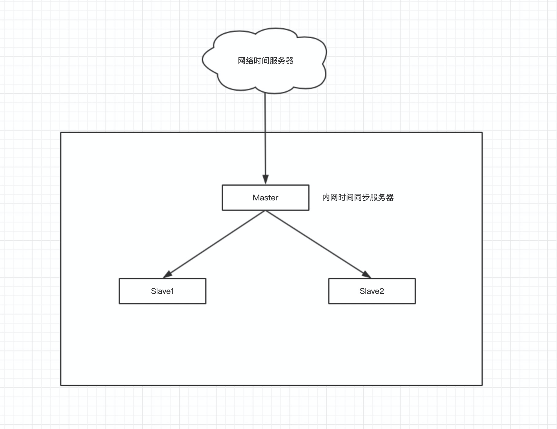 2、Master作为内网时间服务器,为内网中的其他服务器提供时间同步服务,具体的架构图如下图所示。